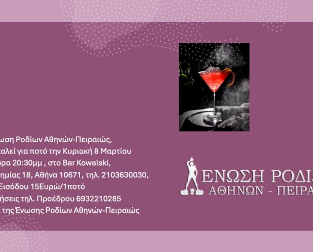 ΦΕΒΡΟΥΑΡΙΟΣ 13 ΠΑΡΑΣΚΕΥΗ 8μμ: Κοπή Πίτας και γλέντι Ένωσης Καλυμνίων στο κέντρο «ΟΜΑΛΟΣ» (Πειραιώς 68, Μοσχάτο) 14 ΣΑΒΒΑΤΟ 4μμ: Παιδικό αποκριάτικο πάρτυ Συλλ. Κασίων (3ης Σεπτεμβρίου 56, 2ος όροφος) 15 ΚΥΡΙΑΚΗ 1μμ: Μεσημεριανό γλέντι Ένωσης Κώων στο κέντρο «Μονοπάτι» Read more…