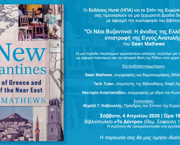Οι Εκδόσεις Hurst (ΗΠΑ) σε συνεργασία με το Σπίτι της Ευρώπης στη Ρόδο, σας προσκαλούν στην παρουσίαση και συζήτηση γύρω από το νέο βιβλίο του δημοσιογράφου Sean Mathews, με τίτλο «The New Byzantines: The Rise of Greece and Return of the Near East». Η Read more…