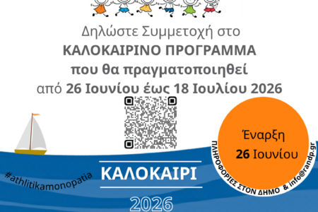Είμαστε στην ευχάριστη θέση να σας ενημερώσουμε ότι το πρόγραμμα «ΑΘΛΗΤΙΚΑ ΜΟΝΟΠΑΤΙΑ» θα πραγματοποιηθεί για 12η συνεχόμενη χρονιά. Το πρόγραμμα αθλητικών δραστηριοτήτων απευθύνεται κυρίως σε παιδιά δημοτικού, μόνιμους κατοίκους της Η.Ν. Κάσου και θα διεξαχθεί από την Παρασκευή 26 Ιουνίου Read more…
