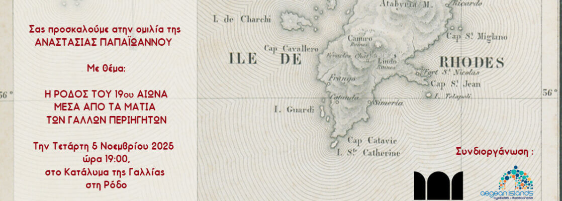 Με ιδιαίτερη χαρά σας προσκαλούμε την Τετάρτη 5 Νοεμβρίου, στις 19:00, στο Κατάλυμα της Γαλλίας στη Ρόδο για την ομιλία της αρχιτέκτονος Αναστασίας Παπαϊωάννου με θέμα: «Η Ρόδος του 19ου αιώνα μέσα από τα μάτια των Γάλλων περιηγητών». Στο συνημμένο δελτίο τύπου θα βρείτε περισσότερες Read more…