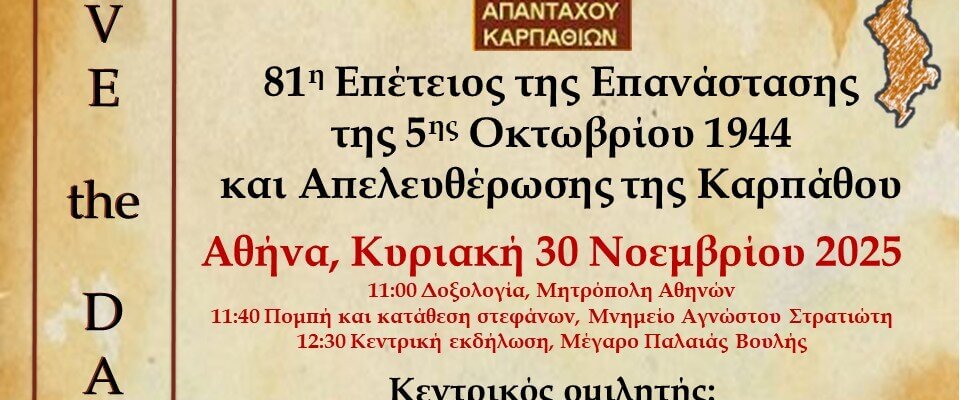 Γράφει ο Μανώλης Κασσωτης Σαν να ήταν Μεγάλη Παρασκευή και μέσα στις ψυχές των ανθρώπων κτυπούσε πένθιμα η καμπάνα της Βαγγελίστρας. Έτσι ξημέρωσε η 29η Σεπτεμβρίου στο Cranford NJ, όχι μόνο για την Καρπαθιακή παροικία, αλλά για όλη την Ομογένεια, Read more…