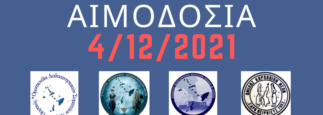 ΣΥΝΕΔΡΙΑΣΗ ΔΣ ΟΜΟΣΠΟΝΔΙΑΣ 1/12/2021 Συμμετείχαν: Καραϊτιανός Γιάννης (Κάρπαθος), Κορωναίου Άννα (Νίσυρος), Ζερβάνου Λουκία (Κως), Κορδίνα Μαρία, Κολεζάκης Μανώλης (Ρόδος), Πετρίδης Φίλιππος (Σύμη), Λουκάς Κύκκος (Καστελλόριζο), Οικονομίδου Ισαβέλλα, Ηρακλείδου Σοφία, Ηλιάδης Βαγγέλης (Χάλκη), Αντύπα Μαριάννα (Λέρος), Βασιλάκη Σούλα (Τήλος), Χατζόπουλος Read more…