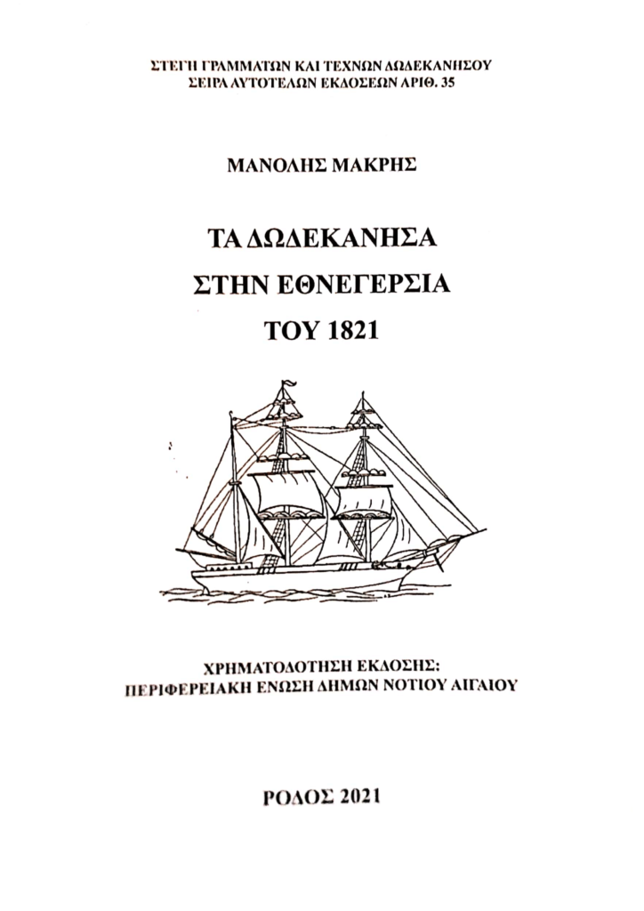 Την Παρασκευή 20/08/2021 στις 08:00 μ.μ. στο κινηματοθέατρο «Ρόδον» παρουσιάστηκε το νέο βιβλίο του Μανόλη Μακρή με τίτλο: «Τα Δωδεκάνησα στην Εθνεγερσία του 1821»