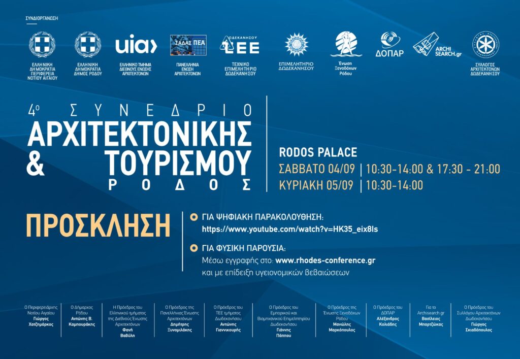 Το 4ο Συνέδριο Αρχιτεκτονικής και Τουρισμού θα λάβει χώρα στο ξενοδοχείο Ρόδος Παλλάς στις 4 και 5 Σεπτεμβρίου 2021.