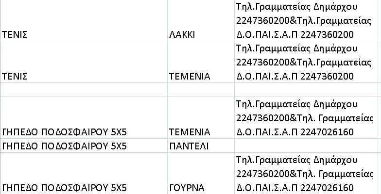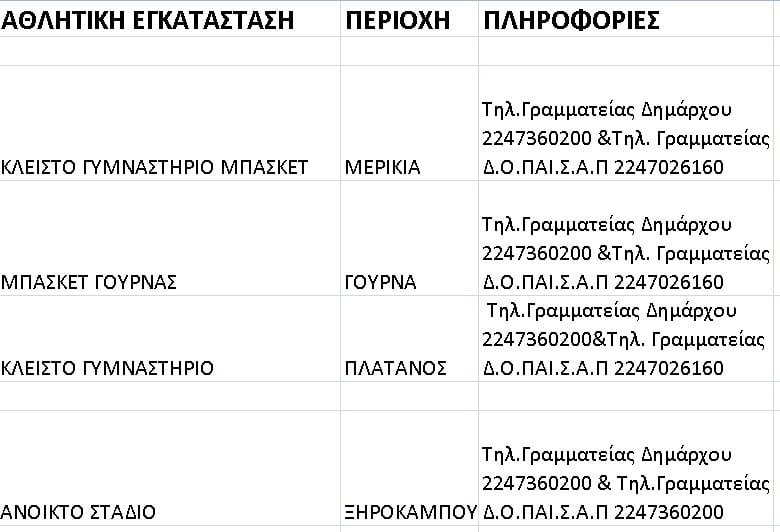 εγκαταστάσεις του νησιού μας, δημιουργήσαμε μία λίστα των