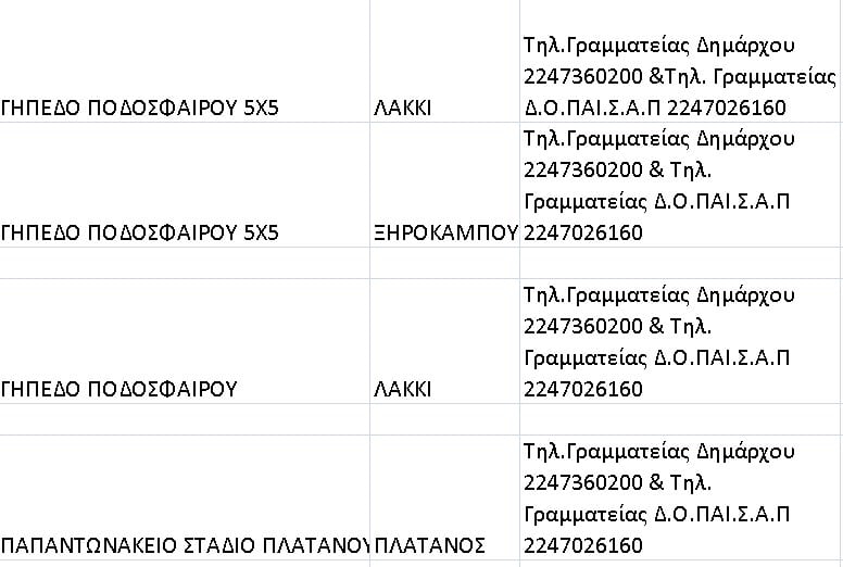 σωστή εξυπηρέτηση των πολιτών σχετικά με τις υπάρχουσες αθλητικές