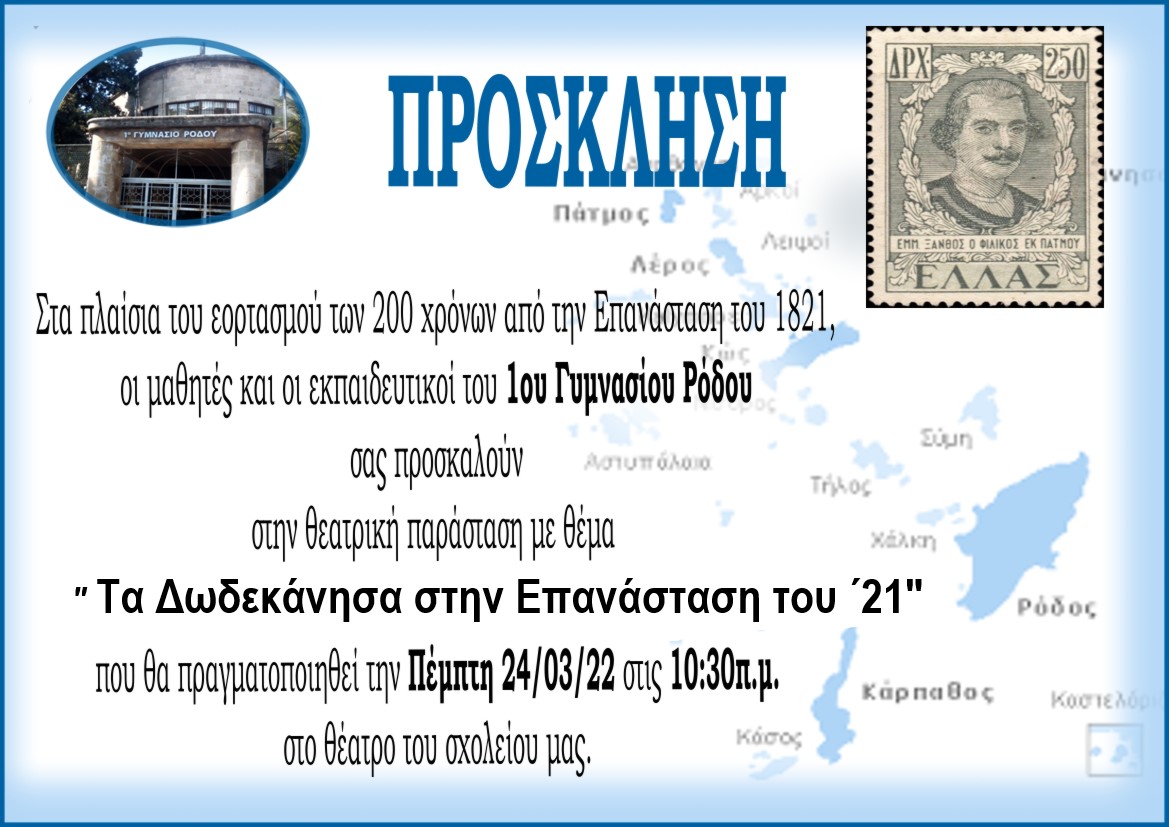 από την επανάσταση του 1821 παρουσιάζει τη θεατρική παράσταση με θέμα: