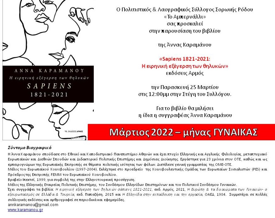 Παρουσίαση Βιβλίου: «Sapiens 1821-2021: Η ειρηνική εξέγερση των θηλυκών