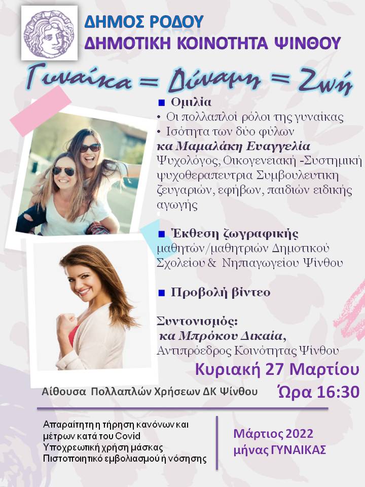 Οι εκδηλώσεις του «Μάρτιος 2022 – μήνα ΓΥΝΑΙΚΑΣ» είναι οι εξής :