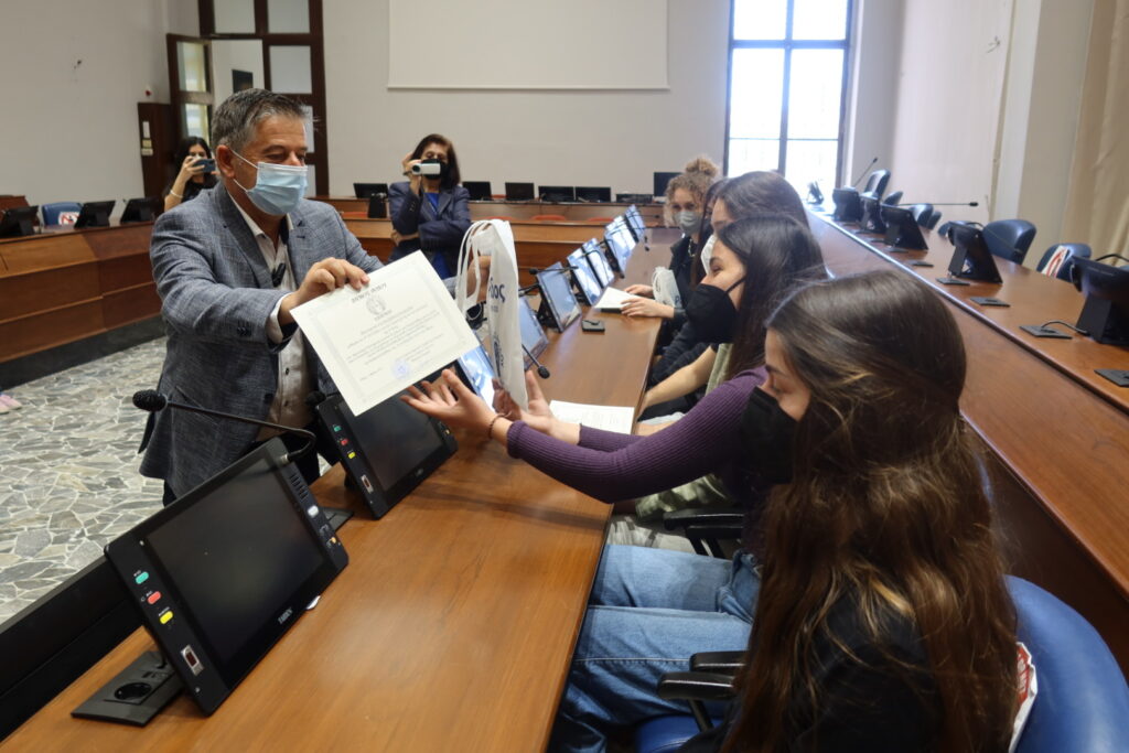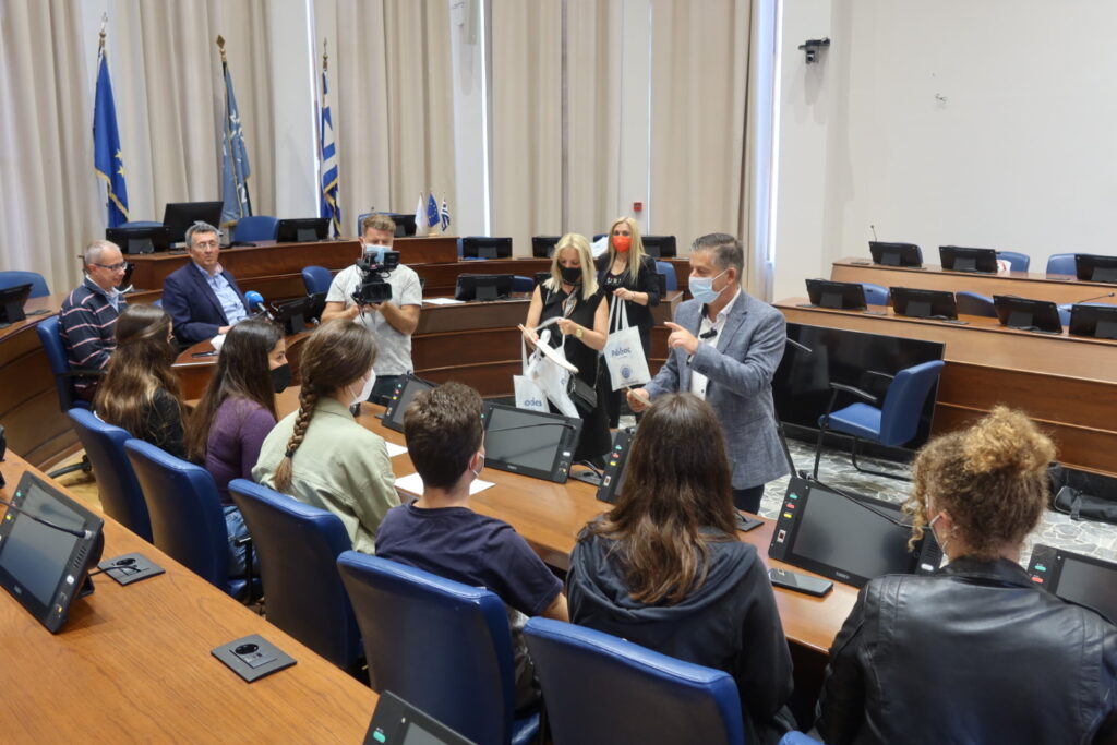 Ο εντεταλμένος δημοτικός σύμβουλος Τουρισμού, Δημοσίων και Διεθνών Σχέσεων κύριος Θανάσης Βυρίνης, υποδέχθηκε στην αίθουσα συνεδριάσεων του Δημοτικού Συμβουλίου τους μαθητές και τις μαθήτριες που συνοδεύονταν από τον εκπαιδευτικό κ. Βασίλη Σάββα, συντονιστή της ομάδας και τον διευθυντή του 3ου ΓΕΛ Ρόδου κ. Ανδρέα Μαρίνο. Τους συνεχάρη ιδιαίτερα και με τη διττή του ιδιότητα ως εκπρόσωπος του Δήμου, αλλά και ως εκπαιδευτικός για τη σημαντική διάκριση στον πανελλήνιο διαγωνισμό και τους ευχήθηκε κάθε επιτυχία στον Ευρωπαϊκό αντίστοιχο διαγωνισμό που θα πραγματοποιηθεί στη Μπολόνια στις 20 Ιουνίου.