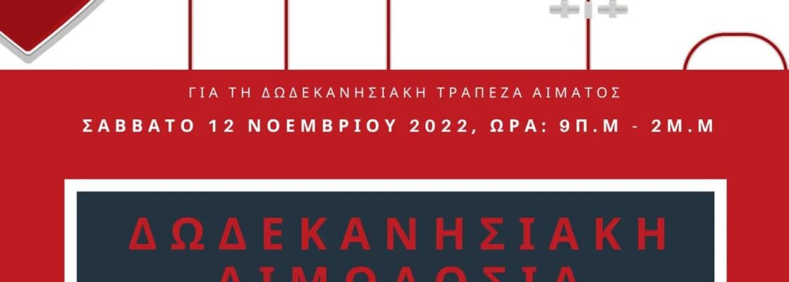 Σας περιμένουμε όλους να ανταποκριθείτε και σε αυτό το κάλεσμα ζωής για την ενίσχυση της Δωδεκανησιακής Τράπεζας Αίματος!