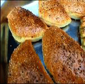 Τοποθετείτε τη πίτα στο ταψί και επαναλαμβάνετε μέχρι να τελειώσει η γέμιση. Χτυπάτε τον κρόκο ενός αυγού και αλείφετε τις πίτες με ένα πινέλο. Πασπαλίζετε με σουσάμι και μαυροσήσαμο .Ψήνετε στο φούρνο μέχρι να ροδίσουν καλά περί