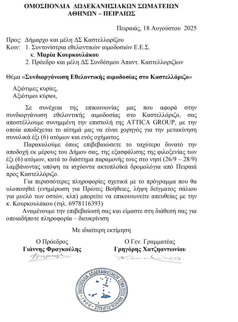 Συνδιοργάνωση Εθελοντικής αιμοδοσίας στο Καστελλόριζο