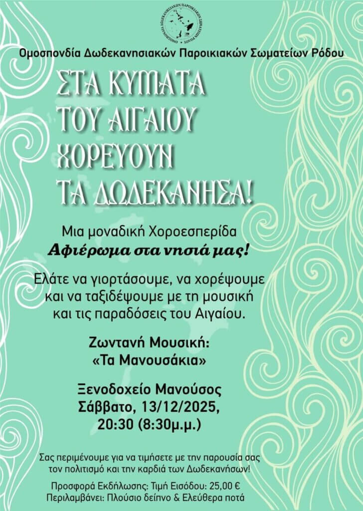 Η Ομοσπονδία Δωδεκανησιακών Παροικιακών Σωματείων Ρόδου έχει τη χαρά να