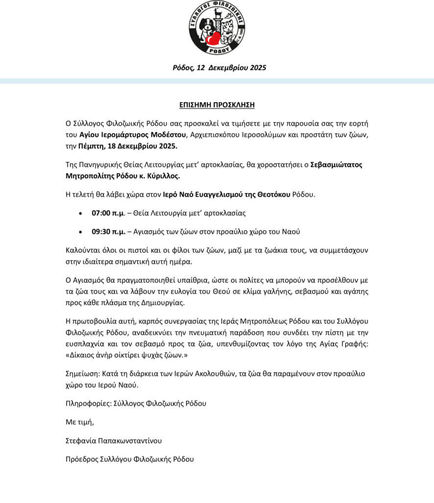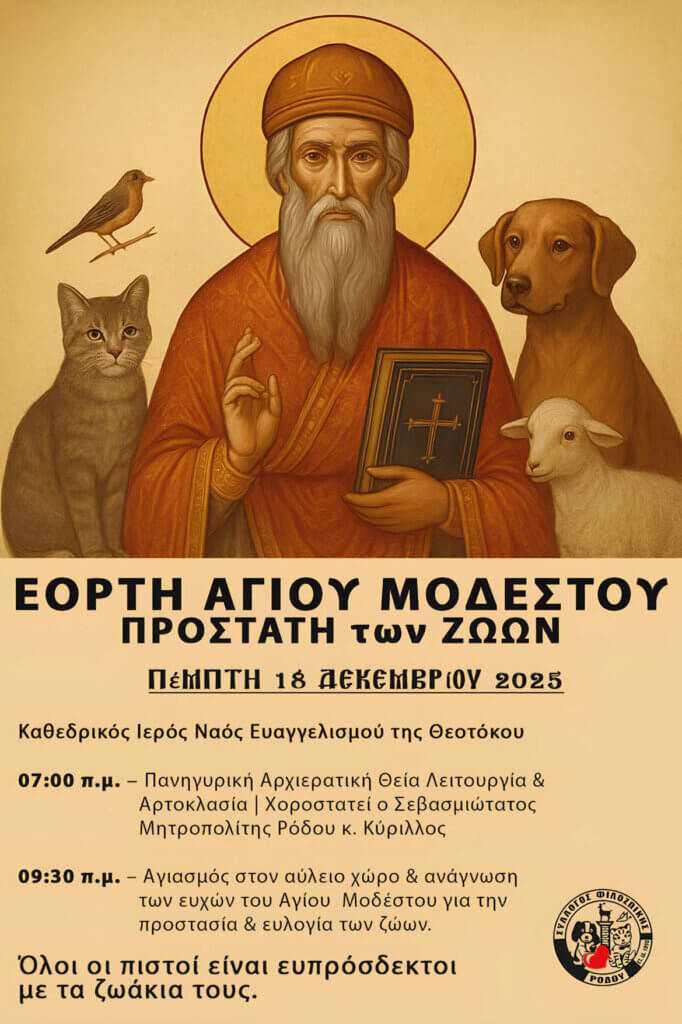 Πρόσκληση – Εορτή Αγίου Μοδέστου, Προστάτη των Ζώων