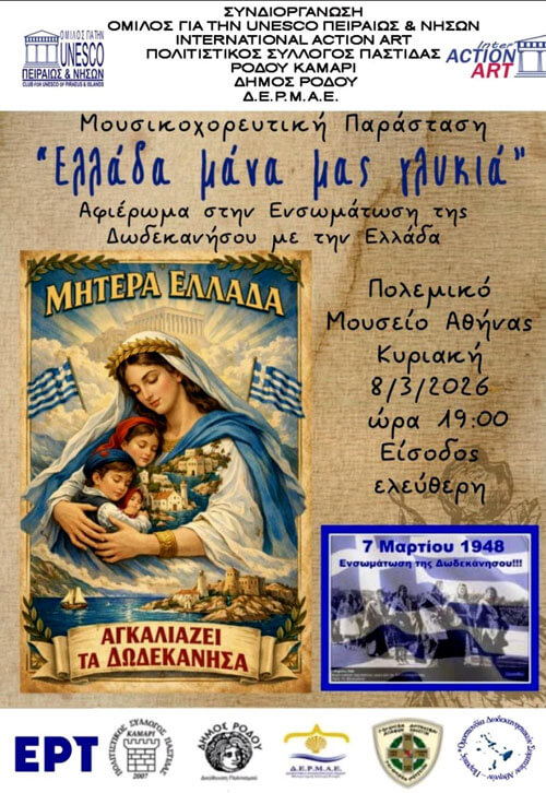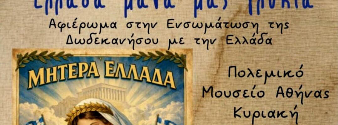 «Ελλάδα μάνα μας γλυκιά» – Αφιέρωμα στην Ενσωμάτωση της Δωδεκανήσου & την Παγκόσμια Ημέρα της Γυναίκας.