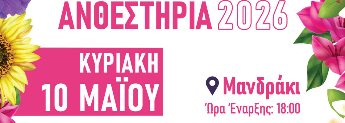 Ο Δήμος Ρόδου προσκαλεί όλους τους κατοίκους και επισκέπτες του νησιού στη μεγάλη Γιορτή των Ανθεστηρίων, που θα πραγματοποιηθεί την Κυριακή 10 Μαΐου 2026, στις 18:00, στο Μανδράκι της Ρόδου.