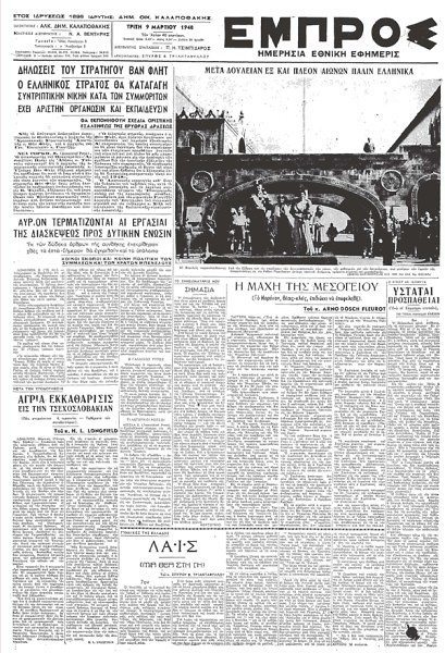 Η σημερινή ημέρα επληρώθη με πολύ αίμα και πολλά δάκρυα, αλλά μόνον με αίμα και δάκρυα γράφονται ιστορίαι, όπως η Ελληνική.