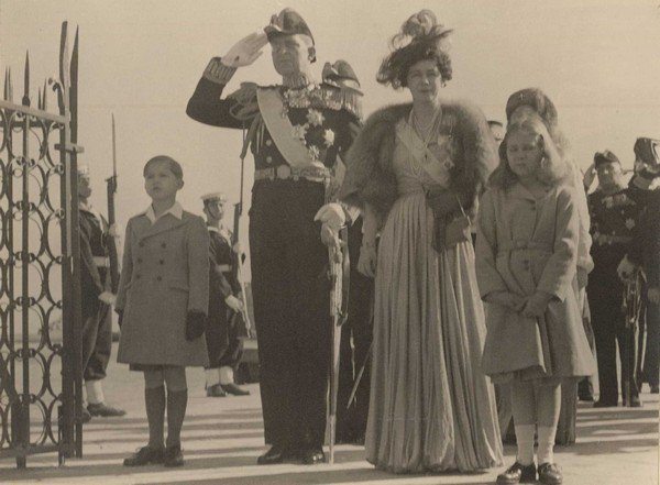 Μετά τον Βασιλέα αποβιβάζονται η Βασίλισσα, ο Διάδοχος και οι λοιποί πρίγκιπες. Εις την προβλήτα τους υποδέχεται ο Στρατ. Διοικητής ναύαρχος Ιωαννίδης και τα μέλη της Κυβερνήσεως. Ο Βασιλεύς σταματά εμπρός εις την αψίδα όπου ο αναμένων εκεί δήμαρχος της Ρόδου Γαβριήλ Χαρίτος εγχειρίζει εις τον Βασιλέα της Ελλάδος συμβολικώς την κλείδα της πόλεως και προσφωνεί τους Βασιλείς εκφράζων την αγαλλίασιν της πόλεως και όλης της Δωδεκανήσου διά το ευτυχές γεγονός της σημερινής ημέρας.