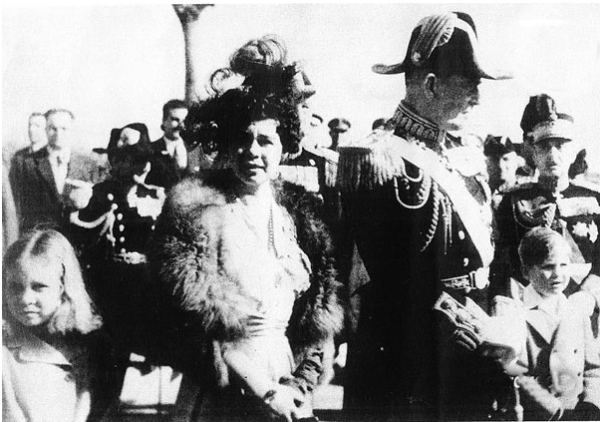 Εις τας 9,35΄π.μ. ακριβώς υπό τους ήχους των χαιρετιστηρίων κανονιοβολισμών, τας κωδωνοκρουσίας όλων των εκκλησιών της Ρόδου, τους συριγμούς των σειρήνων όλων των πλοίων, πλευρίζει εις την προβλήτα η βενζινάκατος που φέρνει τον Βασιλέα. Τα πλήθη μόλις ο Βασιλεύς πατεί εις την ξηράν, ζητωκραυγάζουν, χειροκρατούν, μέσα σε παραλήρημα ενθουσιασμού.