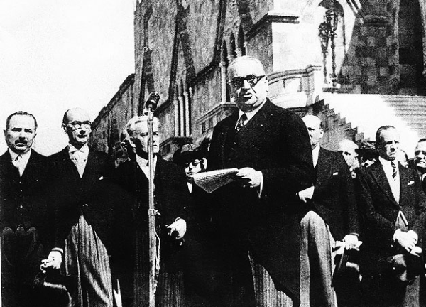 Μετά την ανάγνωσιν του Βασιλικού Διατάγματος ο Βασιλεύς συγκεκινημένος αλλά με σταθεράν φωνήν διαβάζει το κάτωθι διάγγελμά του προς τον λαόν της Δωδεκανήσου:
