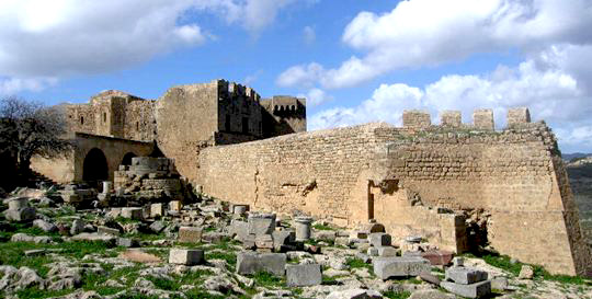 Πάνω από τη σύγχρονη πόλη δεσπόζει η αρχαία ακρόπολή της, μια φυσική οχυρωματική θέση που αξιοποιήθηκε από τους αρχαίους κατοίκους της περιοχής, και μετέπειτα από τους Ρωμαίους, τους Βυζαντινούς, τους Ιωαννίτες Ιππότες και τέλος, από τους Τούρκους