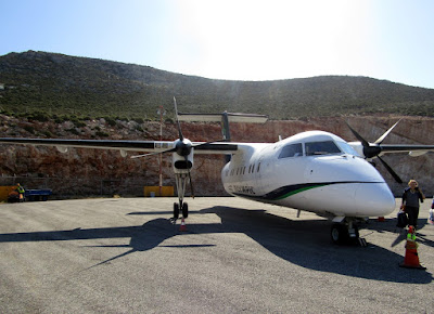 Το μικροσκοπικό δημοτικό αεροδρόμιο του νησιού μάς υποδέχθηκε γύρω στις 9.30 το πρωί, μετά από μια χαλαρή πτήση-απόλαυση 25 λεπτών από τη Ρόδο. Στην έξοδο του αεροδρομίου, το μοναδικό ταξί του νησιού, επιφορτισμένο να εκτελεί χρέη “λεωφορείου” για τους ταξιδιώτες, ανέλαβε και την πρώτη γνωριμία μας με το πολύχρωμο τοπίο της “χώρας”, καθώς κατηφορίζαμε αργά προς τη θάλασσα.