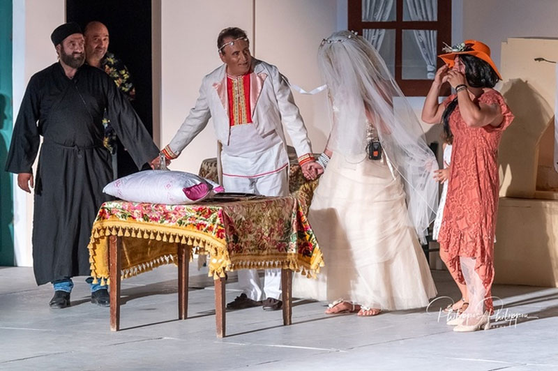 Τους ρόλους ερμηνεύουν με σειρά εμφανίσεως οι: Φλώρα Λεβέντη, Γιώργος Γέροντας, Σωτήρης Ζουρούδης, Ελένη Διασινού, Ευαγγελία Πατατούκου, Ζωή Κωνσταντούρα, Μυρσίνη Μητσιάκη, Θαρρεινή Πατατούκου, Μανώλης Αντωνόγλου, Κώστας Οθίτης, Νίκος Χαβιαράς, Μαριγώ Σεμερτζάκη, Άννα Μαλιάκα, Σωτήρης Ι,Πατατούκος, Σωτήρης Κ.Πατατούκος, Σωτήρης Γ. Καραγιάννης.