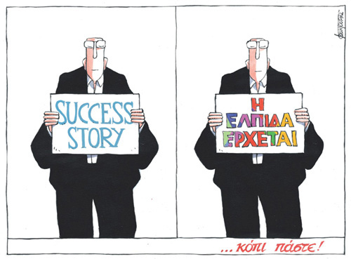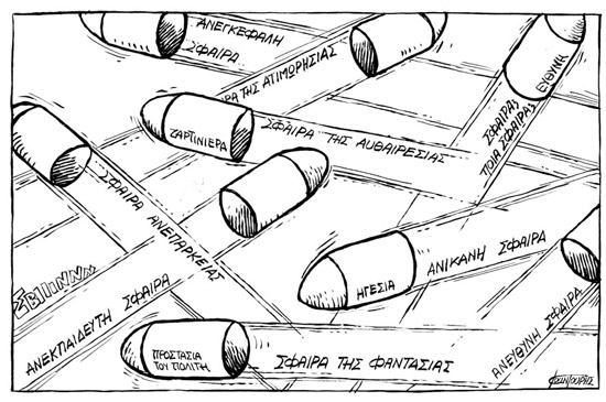 Ένα απλό σερφαρισματάκι όμως να κάνετε στο διαδίκτυο και να διαβάσετε τις συμμετοχές σε διεθνείς διαγωνισμούς γελοιογραφίας, θα βρείτε ’γγλους Γάλλους Πορτογάλους, Αλβανούς και Τούρκους, Ρουμάνους και Βραχμάνους κι από Ρωμιούς, ούτε έναν. Και σπάνια, αν υπάρξει έστω και μια συμμετοχή, σφάζουμε αρνί και στήνουμε και πανηγύρι. Όμως ιδού η Ρόδος, ιδού και τα τρίδυμα. Και ως γνήσιος Ροδίτης, ο Μιχάλης τα κατάφερε φέτος μια χαρά.