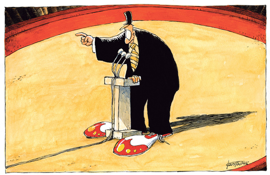Όπως πηγαίνει, αν ήταν ολυμπιακό αγώνισμα η γελοιογραφία, μπορεί και να τον βλέπαμε σε κανένα βάθρο. Να σήκωνε κανένα χρυσό, εδώ στην Αθήνα το 2004 και να έσκαγε απ’ τη χαρά της καμιά Αγγελοπούλου.