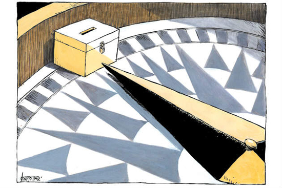 Σκιτσάκια χωρίς λόγια είναι οι περισσότερες γελοιογραφίες του Κουντούρη. Χωρίς λόγια αλλά με μπόλικο χιούμορ και σχολιασμό. Κι επειδή τα λόγια είναι φτώχια, ας αφήσουμε τα νούμερα να μιλήσουν: Ούτε σε έναν, ούτε σε δύο αλλά σε τρεις διεθνείς διαγωνισμούς διακρίθηκε φέτος ο Μιχάλης που αποφάσισε επιτέλους να δει τι γίνεται και… παραέξω. Τρεις διαγωνισμούς γελοιογραφίας κι έβγαλε το φτωχό μας πριγκιπάτο ασπροπρόσωπο. Γιατί- ως πριγκιπάτο-ξέρουμε πάντα να λέμε πολλά παχιά λόγια απ’ τα παχουλά μας καναπεδάκια και να περιαυτολογούμε για την ανωτερότητα των δυνατοτήτων μας δυνατοτήτων μας.
