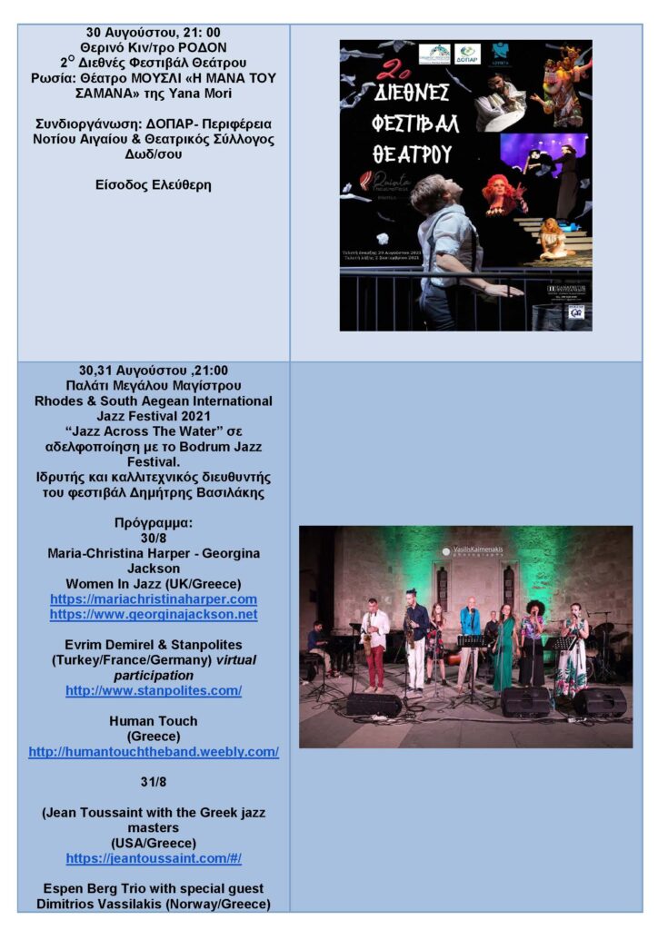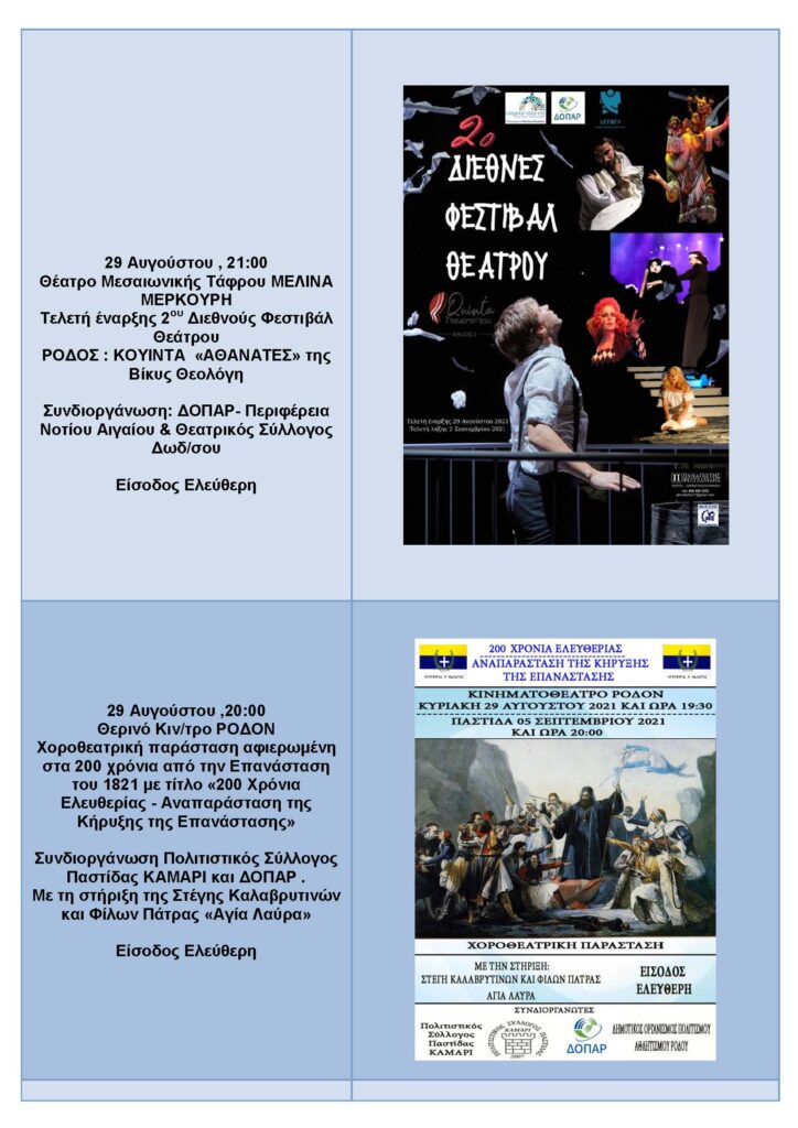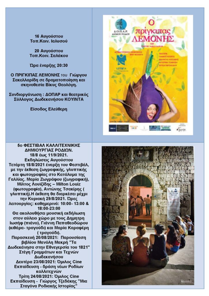 ΠΟΛΙΤΙΣΤΙΚΟ ΚΑΛΟΚΑΙΡΙ -ΑΥΓΟΥΣΤΟΣ 2021
