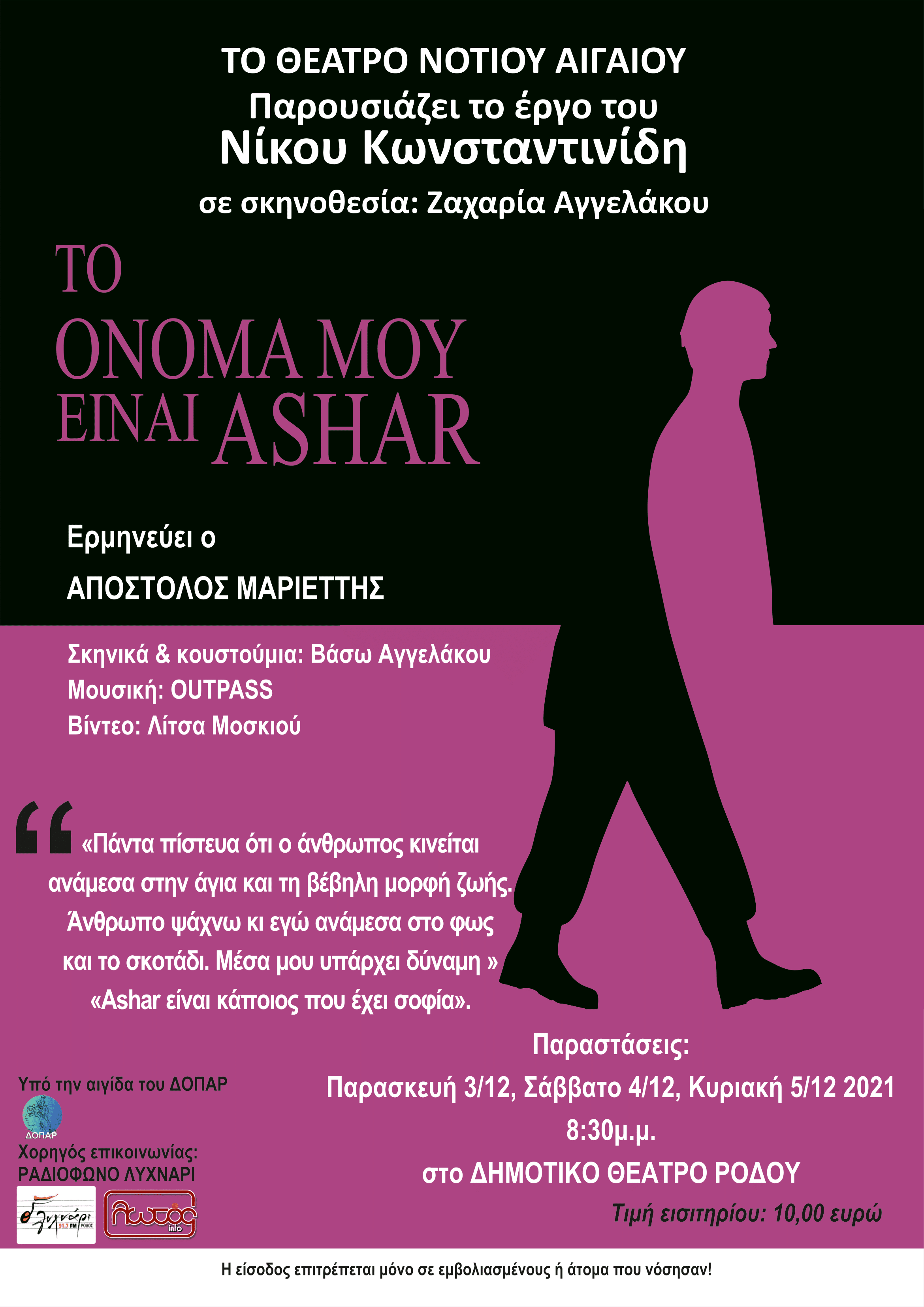 “ΤΟ ΟΝΟΜΑ ΜΟΥ ΕΙΝΑΙ ASHAR” ΘΕΑΤΡΙΚΗ ΠΑΡΑΣΤΑΣΗ ΣΤΟ ΔΗΜΟΤΙΚΟ ΘΕΑΤΡΟ ΡΟΔΟΥ!