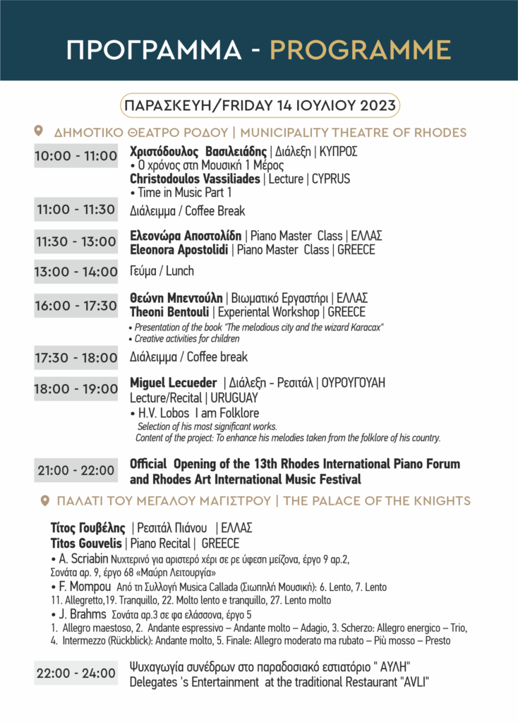 13ο ΔΙΕΘΝΕΣ ΦΟΡΟΥΜ ΠΙΑΝΟΥ ΡΟΔΟΥ ΚΑΙ ΤΟ ΔΙΕΘΝΕΣ ΦΕΣΤΙΒΑΛ ΜΟΥΣΙΚΗΣ ΤΕΧΝΗΣ ΡΟΔΟΥ