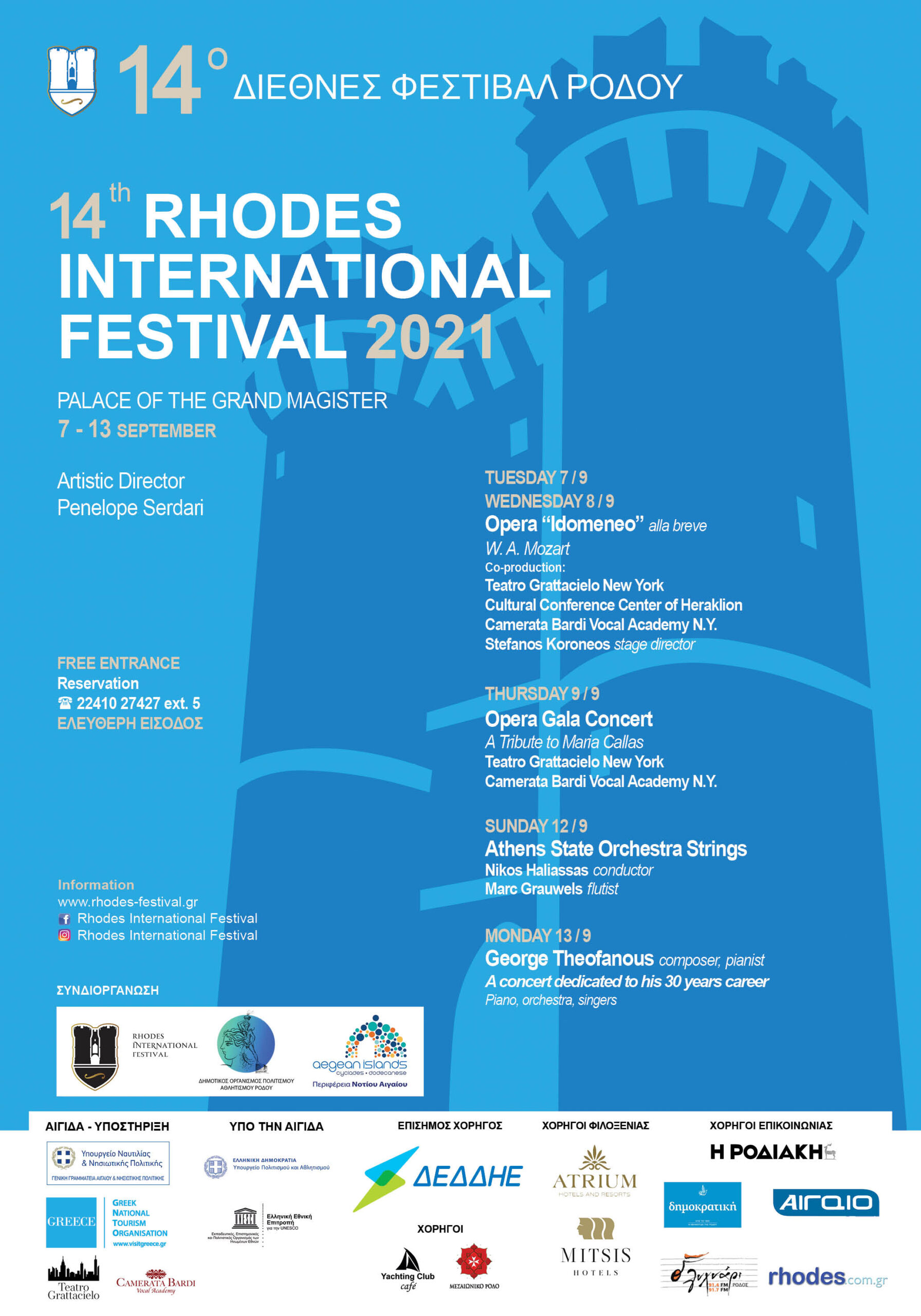 Με αυτή την υπέροχη όπερα η οποία είναι εμπνευσμένη από την Ελληνική μυθολογία και την ιστορία του βασιλιά Ιδομενέα της Κρήτης, σε σκηνοθεσία Στέφανου Κορωναίου, που είναι ο Καλλιτεχνικός και Γενικός Διευθυντής του πολιτιστικού οργανισμού (Teatro Grattacielo & Camerata Bardi), το φεστιβάλ γιορτάζει την επέτειο των 200 χρόνων από την Ελληνική Επανάσταση.